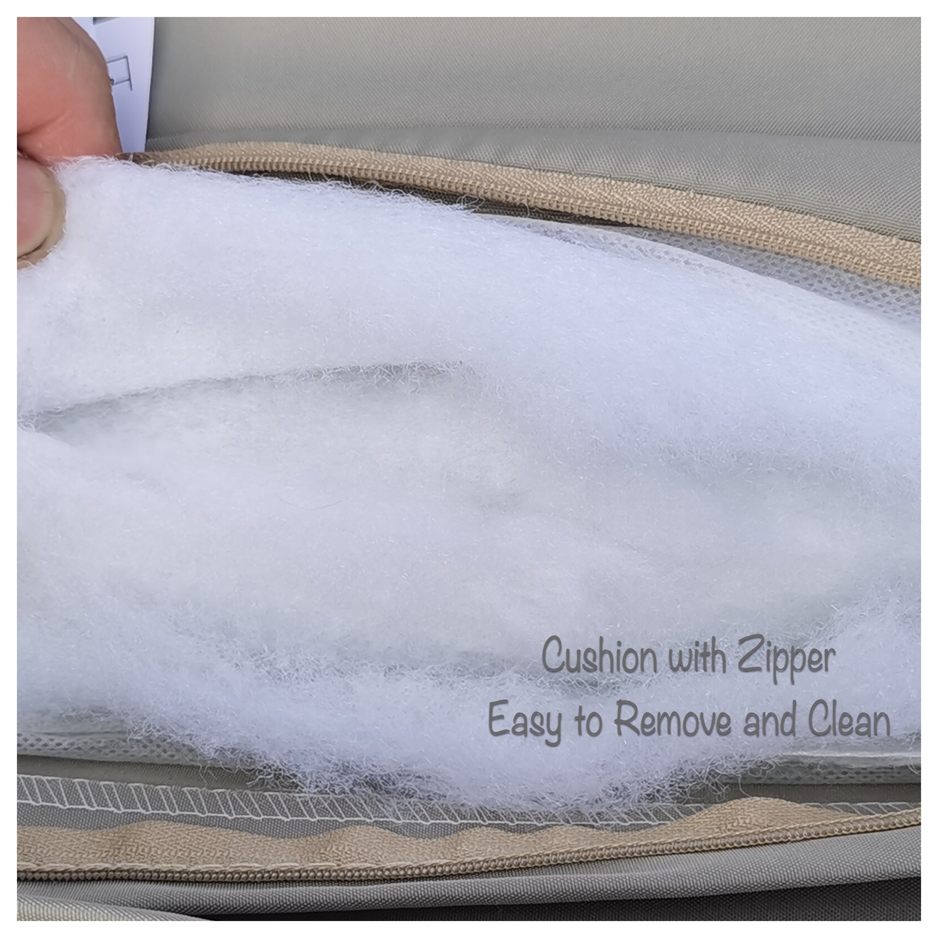 - Comfort with Thick Cushions: Each lounge includes a 2 ¼ in. thick cushion providing extra comfort. The cushion is zippered and filled with outdoor foam wrapped in polyester fiber. On each chaise cushion, we include a pocket that slips over the backrest and two sets of tie down ties which secure it to the chaise frame to prevent slipping. Each cushion can easily be removed. The chaise may be used without the cushions.