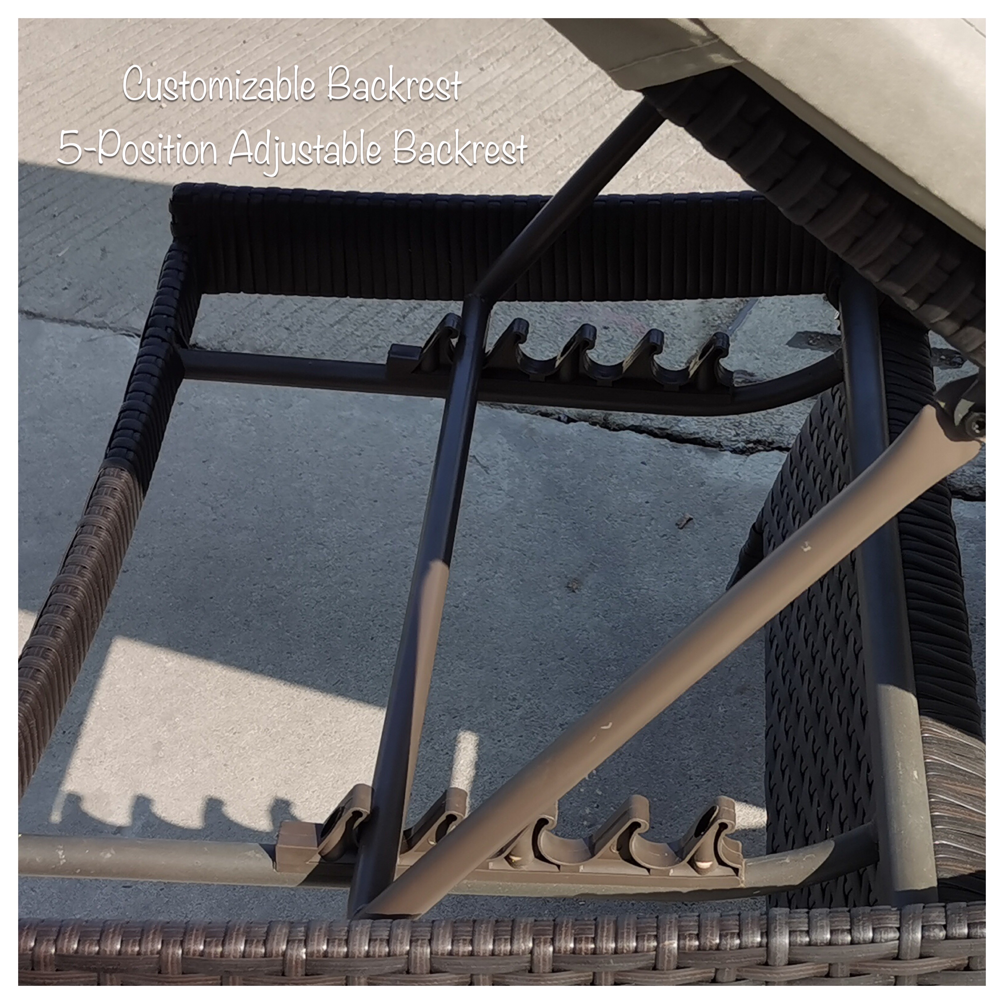 - Durable, Weather-Resistant Construction: Constructed with handwoven all-weather PE wicker, the chaise set is made to ensure durability and resistance to the elements, promising long-lasting enjoyment in your outdoor space.