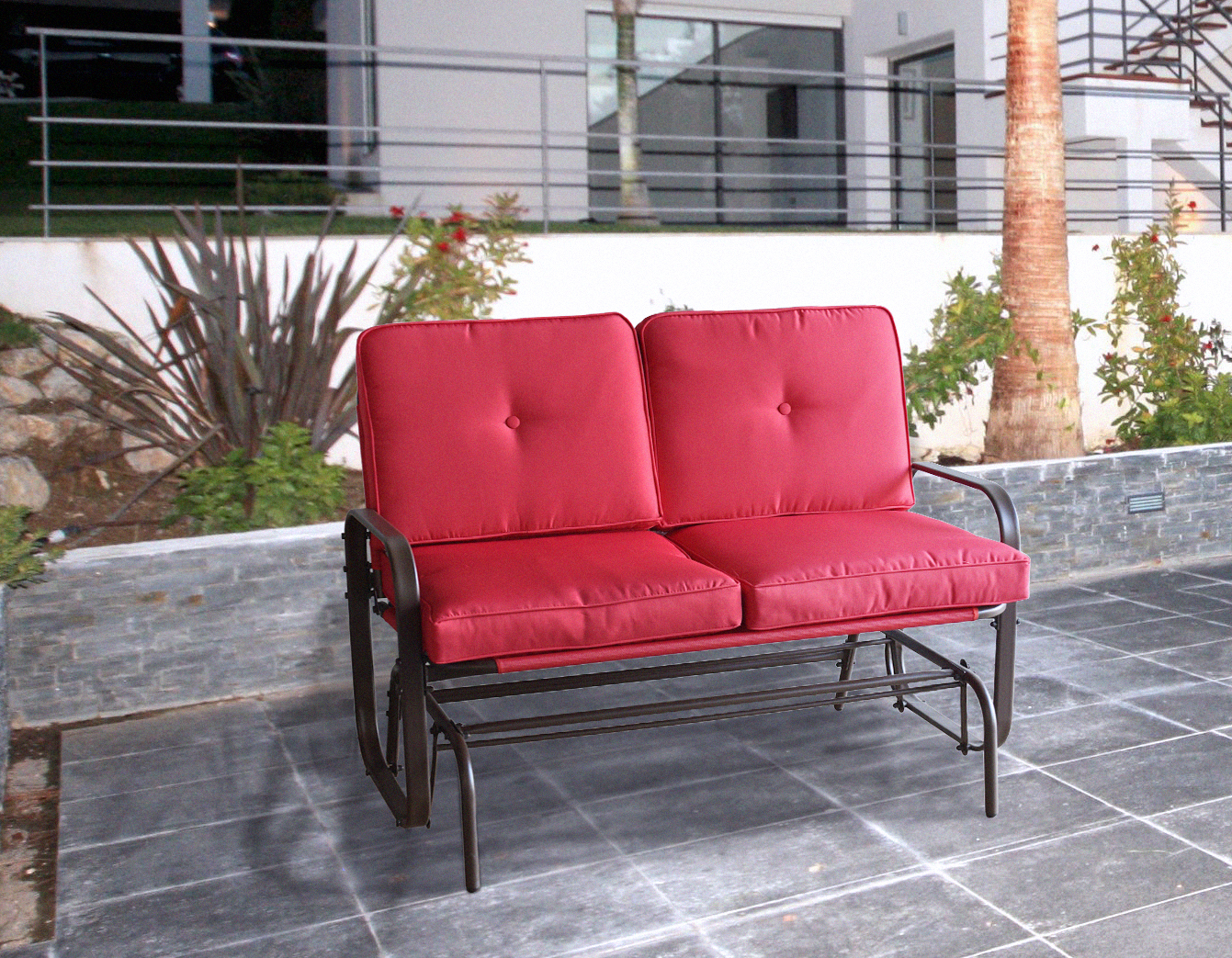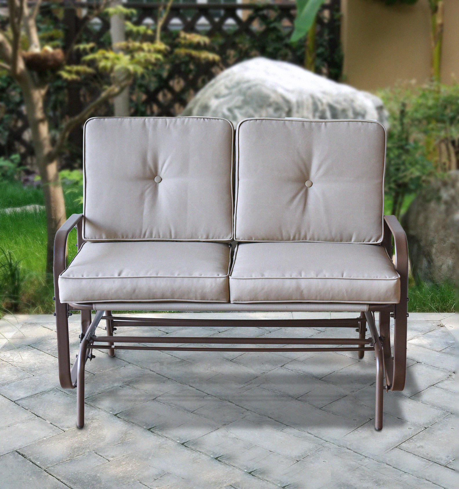 Our glider will elevate your comfort to the next level. Equipped with a smooth and gentle backward and forward motion base which provides you a safe and comfortable rocking experience. This outdoor rocking two-seater glider has an advanced mechanism which provides a quiet, smooth rocking experience. You can sit down comfortably while rocking back and forth. With the rocking feature, you can fully enjoy leisure time with your family. The construction of the glider is stable and easy to move. Made of steel with a powder-coated finished. The structure is designed to keep it stable and durability which can hold up to 400lbs. The cushions are made for relaxation. The cushions are made using all-weather polyester fabric. Tolentino will be a charming addition to your living space. Perfect for deck, backyard, garden or poolside. Assembly is required.