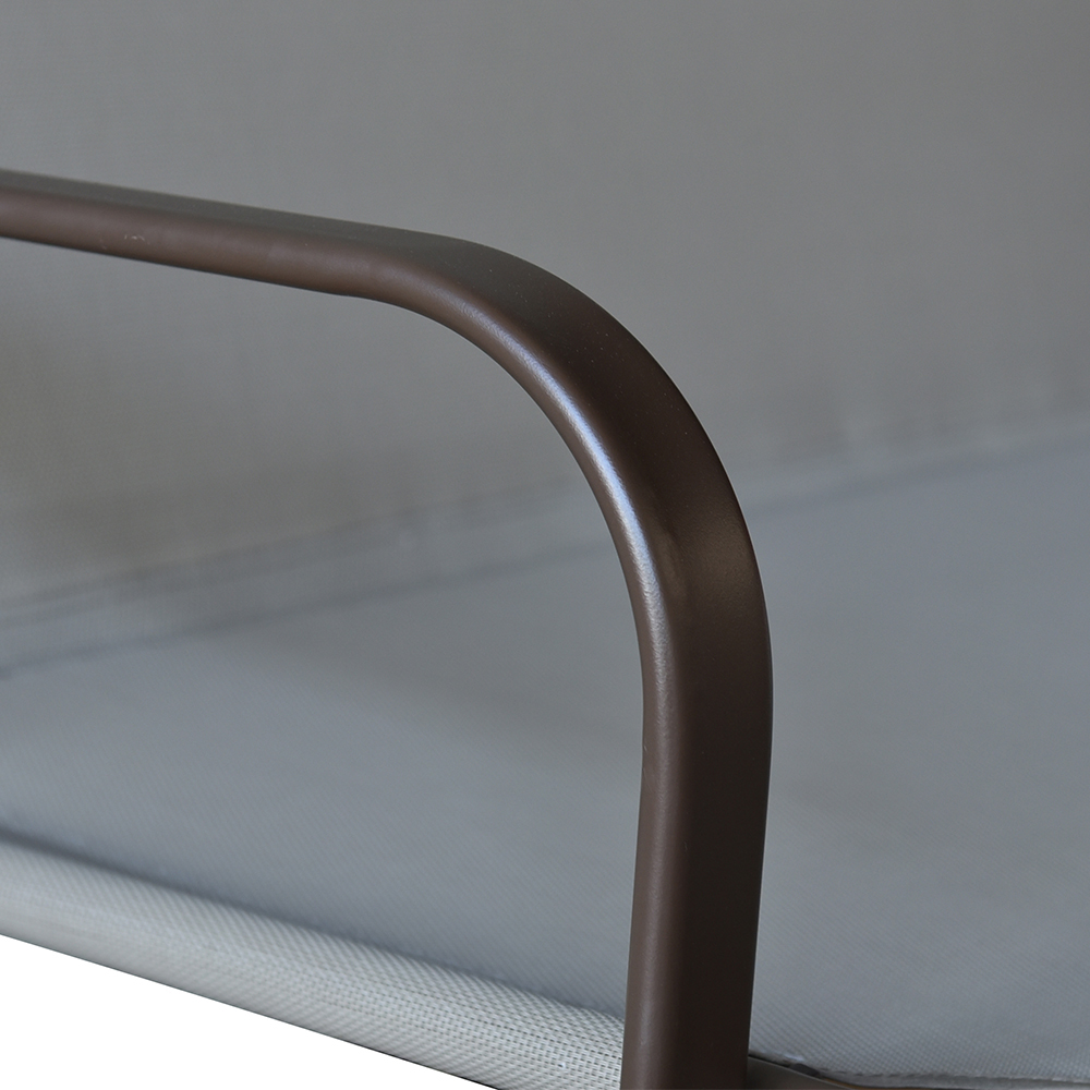 - All weather powder coated in a brown finish with red polyester all-weather fabric